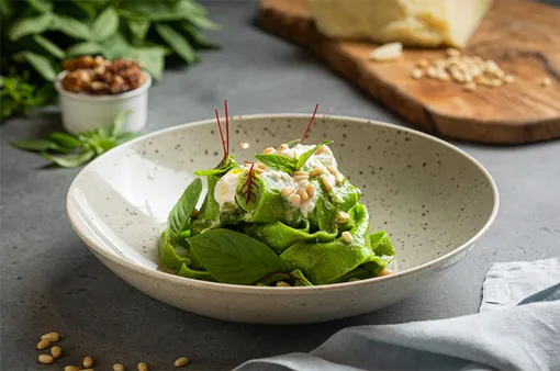Паппарделле песто с сыром страчателла