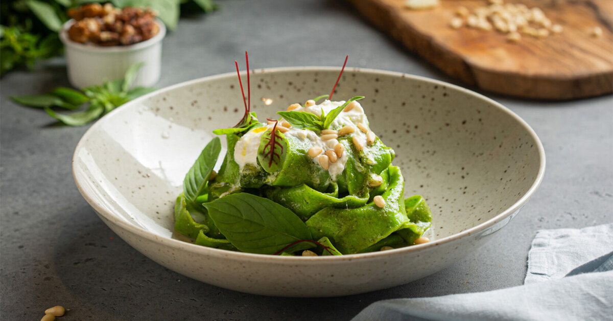 Паппарделле песто с сыром страчателла
