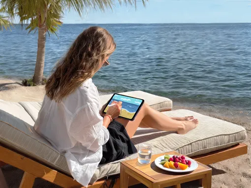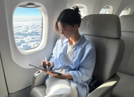 Наверняка вы замечали, что часто творческая энергия просыпается в полете. Завораживающий вид на облака из иллюминатора навевает особенные ассоциации, и хочется запечатлеть эту картинку, передав воздушность и нежность. Планшет удобно поместится на самолетном столике и поможет воплотить любую идею.
