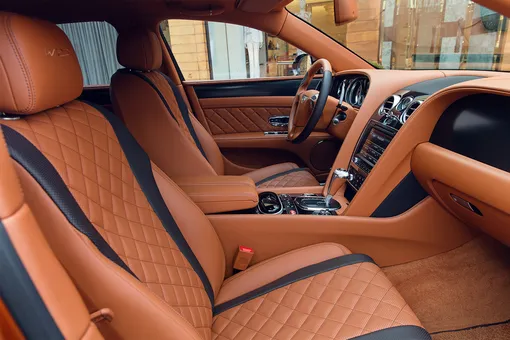 В базовой комплектации Bentley Flying Spur W12 S можно обнаружить интерьер в черном цвете с оранжевыми вставками и контрастной строчкой, однако поклонники персонализации смогут составить свою цветовую комбинацию.