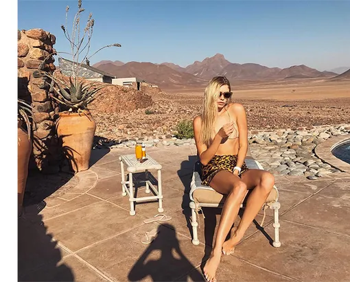 Самое интересное сочинение на тему «Как я провел лето» получится у Елены Перминовой. Пока другие бороздят морские просторы, любимая модель российского глянца путешествует по песчаным дюнам пустыни Намиб. Ее фотоотчеты об африканских приключениях в считаные дни окрасили ленту Instagram (Социальная сеть признана экстремистской и запрещена на территории Российской Федерации) в жаркую палитру. В хрониках — бескрайние барханы, глиняные плато, «верблюжьи акации» на фоне огненных закатов и, словно прекрасный мираж в жаркой пустыне, - длинноногая блондинка, возлежащая на песке в сливающемся с цветом кожи купальнике.