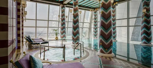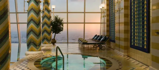 Хотя бы раз завершить день в Burj Al Arab нужно в местном Talise Spa. Сначала записаться на двухчасовой расслабляющий массаж, а потом зайти в зону бассейна, убранство которой напоминает купальни у древних народов Ближнего Востока. Там можно будет не только продолжить расслабляться в комфортной атмосфере (для женщин предусмотрена отдельная зона отдыха, в которую мужчинам вход воспрещен), но и поплавать в бассейне с видом на весь Дубай.