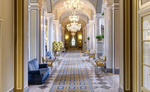 Актерская пара отдыхала на озере Комо. Отель представляет собой несколько вилл – отреставрированных особняков XIX века. Место идеально для ценителей искусства: интерьеры дополнены античными статуями и работами известных живописцев.