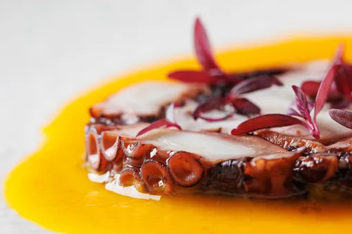 Итак, после спа отправляемся в ресторан AquaTerra, где однозначно стоит пробовать дегустационный сет от шефа Андрея Матюхи. Это гастрономическое путешествие, где морские ингредиенты соединяются с земными продуктами — философия баланса между двумя стихиями. Подачи распределены от наименее жирного осьминога в травах к более насыщенным гребешку с лимонным гелем, палтусу в пряном масле и камбале с трюфельным картофелем и щучьей икрой. К каждой подаче идет продуманный винный пейринг, а в конце гостей ждет десерт — фундучное кремю с меренгой «Роше», ванильным кремом и кофейным мороженым.