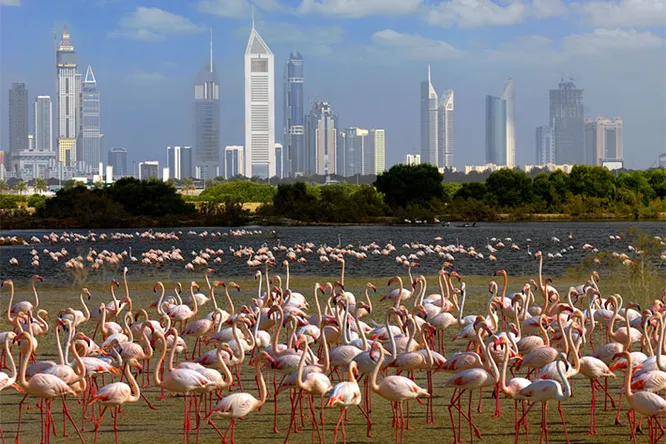 Сотни пернатых, населяющих Рас-аль-Хор, не повод вспомнить классику Хичкока: фламинго, бакланы, чибисы и прочие резиденты заповедника ведут себя дружелюбно и с удовольствием позируют для Instagram (Социальная сеть признана экстремистской и запрещена на территории Российской Федерации). Особенно сюрреалистичной выходит картинка на фоне небоскребов, неизбежно попадающих в кадр. Сложно представить себе более точную аллегорию Дубая, где, с одной стороны, возводят дворцы из стекла и бетона, а с другой — тратят 55 миллионов долларов в год на озеленение территорий и охрану природы. При всем при этом Рас-аль-Хор — одно из самых живописных и романтичных мест в городе. И точно самое доступное, вернее, совершенно бесплатное — и такое в эмирате семизвездочных отелей тоже случается.