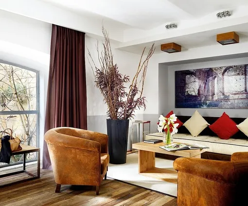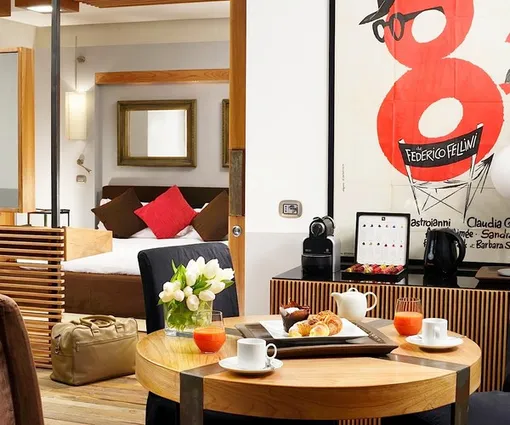 Здание, в котором расположен отель, а также палаццо, окружающее масштабный внутренний дворик, некогда служили местом сосредоточения артистической жизни Рима. Прадедушка владельца отеля построил эти здания с необычайно высокими окнами, которые пропускают поразительно много света, чтобы принимать здесь художников своего времени. На протяжении нескольких лет более 1800 творцов находили в этом доме временное пристанище, работая над своими полотнами. Во внутреннем дворике легко можно было застать Пикассо, чья студия находилась по соседству, за разговором со своим коллегой. Среди других выдающихся деятелей искусств, которые приходили сюда в поисках вдохновения, были Стравинский, Пуччини и Феллини. Отец владельца отеля в свое время тоже использовал помещения этого здания в качестве фотостудии, а впоследствии переоборудовал некоторые комнаты в звукозаписывающие студии. В то время в длинных коридорах можно было встретить топ-моделей, кинозвезд и папарацци – все вокруг будто напоминало сцену из «Сладкой жизни» Феллини.
