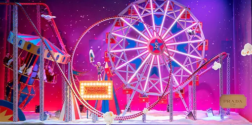 Атмосферу праздника поддерживает яркое оформление витрин торгового центра. За вдохновением художники обратились к знаменитым парижским ярмаркам 1900-х годов. Задорные звуки шарманки, колесо обозрения, игровые автоматы, американские горки — главное, чтобы от такого веселья не закружилась голова.