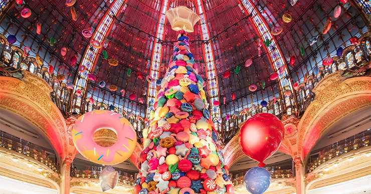 Каждый год под знаменитым куполом парижских «Галерей Лафайет» оживают самые яркие детские фантазии: о бесконечных рядах лавок со сладостями, о наряженной елке до небес и ярмарке как в фильмах Уолта Диснея — с разноцветными огнями, подарками и ощущением безграничного счастья, густо разлитым в воздухе. В этот раз ожидания детей и взрослых снова не будут обмануты. К началу праздничного сезона один из главных торговых центров Франции подготовился основательно — попав в здание на бульваре Осман, в сказку поверят даже самые черствые скептики.