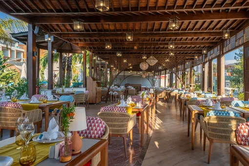 Формат отдыха в Фетхие действительно не классический для Турции, исходя из чего можно подумать, что системы отдыха all inclusive здесь нет — но это, конечно, не так. Более того, именно такой формат окажется более выгодным: из-за скачка курса лиры соотношение цен и качества в ресторанах и барах города не самое приятное, поэтому отель с постоянным доступом к вкусной еде и разнообразным развлечениям станет удачным выбором. Например, в Liberty Fabay сразу несколько ресторанов а-ля карт с итальянской, перуанской и азиатской кухнями, а также большой шведский стол с едой на любой вкус — свежая рыба, мясо, обилие фруктов и овощей, выпечка и десерты, национальные блюда. За углом от главного ресторана также расположилась уютная кондитерская, которая работает 24/7 — тут в любой момент можно выпить кофе на песке и турецкий чай с сэндвичами или пирожными.