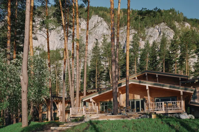 Чтобы успеть насладиться красотой осеннего Алтая, остановиться стоит на берегу реки Катунь рядом с хвойным лесом у подножья Тавдинских пещер — так вы охватите все прелести местного колорита. Тем более что всего в 30 минутах от аэропорта Горно-Алтайска по живописному Чуйскому тракту расположился пятизвездочный семейный SPA-курорт Grand Chalet Altay. Комплекс буквально сливается с пейзжаем, все постройки выполнены из кедра и горной сосны в стиле уютных альпийских шале. Гости могут расположиться как в номерах различных категорий в двухэтажном гостиничном комплексе, так и в уютных домиках площадью от 52 до 403 м², расположенных среди хвойных деревьев. Дизайн интерьера выполнен в минималистичном стиле, в котором соединяются мягкие пастельные тона и натуральное дерево. Вся мебель изготовлена из лиственницы, березы, дуба и американского ореха. Во всех номерах и шале гостей ожидает французская косметика L'Occitane, фирменный премиальный текстиль, ортопедические матрасы, шторы total black-out и многое другое для качественного отдыха.