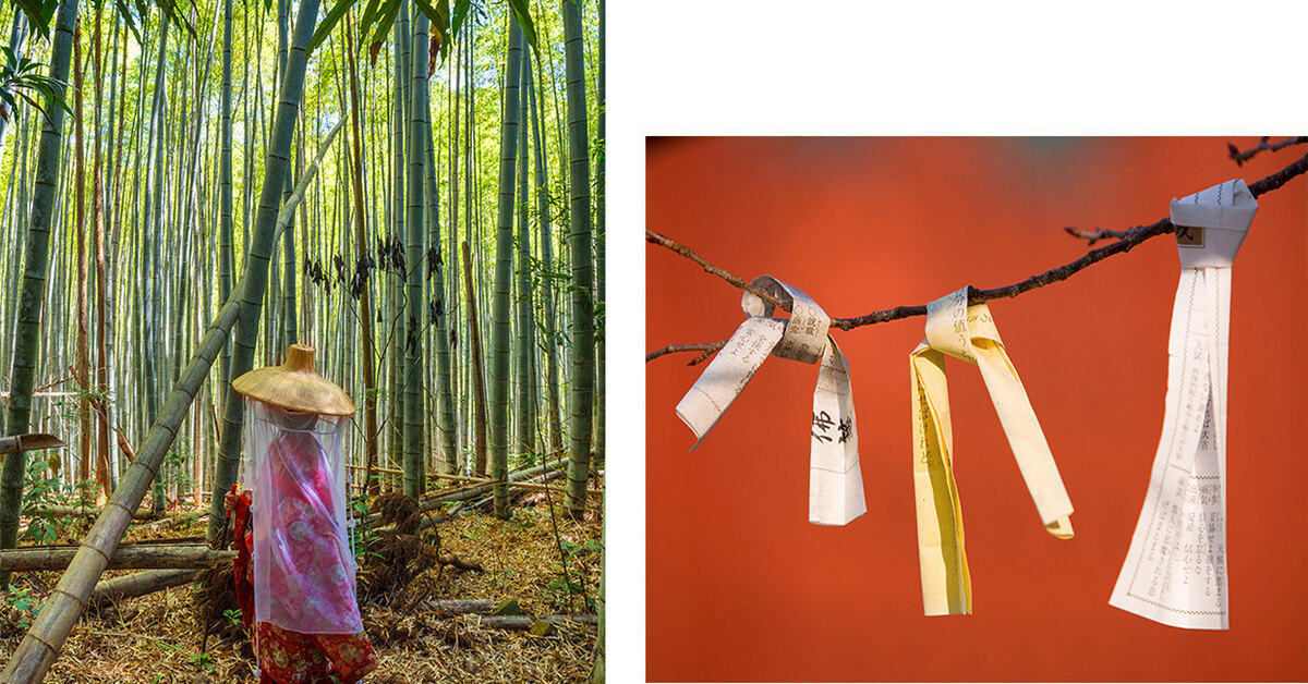 «Они спрашивают, можно ли вас сфотографировать», – Мари-сан, красивая пожилая японка, объясняет, почему за пару минут вокруг меня образовалась ликующая толпа. Вот уж не думала, что, приехав в Японию, стану объектом пристального внимания. Это мне, гайдзину (сокращенное гайко-кудзин – «иностранец»), положено охотиться за экзотикой и без устали щелкать затвором, а вместо этого приходится позировать группе незнакомых людей, будучи одетой в точную копию кимоно придворной дамы эпохи Хэйан (VIII–XII вв. – Прим. HB), и чувствовать себя немного медведем на ярмарке. Впрочем, бурная реакция общественности быстро отходит на второй план, уступая место вопросам куда более насущным. Например, как передвигаться – и желательно хотя бы с минимальным изяществом – в деревянных сандалиях гэта. После такого забег на шпильках по брусчатке покажется лечебной физкультурой. Или вот еще любопытный кейс: нести на себе около семи килограммов плотной ткани, которую мы минут двадцать старательно драпировали с двумя помощницами. Сразу стало понятно, почему этот костюм называли дзюни-хитоэ, «двенадцатислойный». В магазине в местечке Даймонзака, куда нас привезли на импровизированную хэйан-фотосессию, такие расшитые грациозными журавлями и нежнейшей сакурой наряды можно взять напрокат. Хозяйка Тэруэ Миямото на прощание одаривает меня улыбкой: «Ну вот, теперь вы почувствовали, какая это тяжелая работа – быть японкой». Тэруэ недавно исполнилось 90, и она точно знает, о чем говорит.
