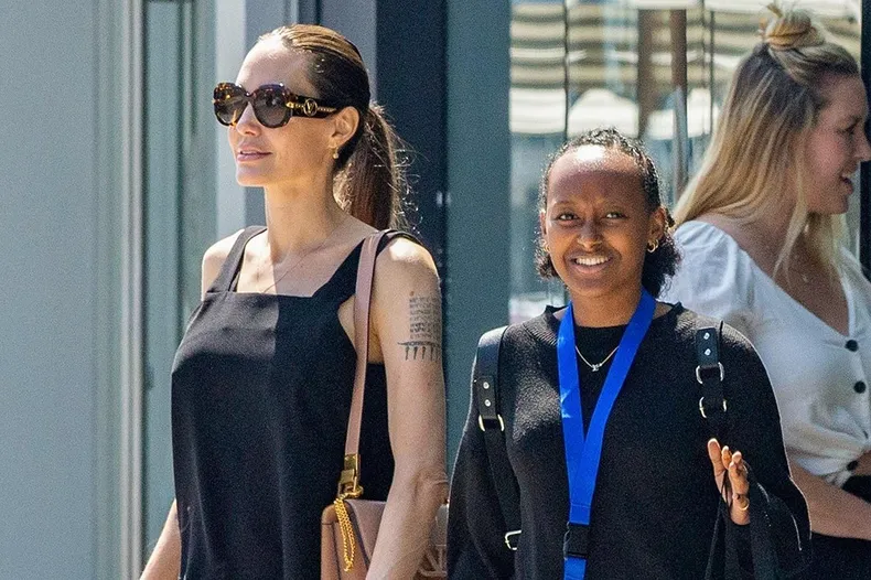 Шифоновый топ и замшевые мюли: Анджелина Джоли с детьми посетила выставку