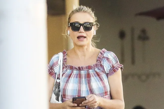 Редкий выход: Кэмерон Диаз в комбинезоне в клетку на шопинге в Беверли-Хиллз