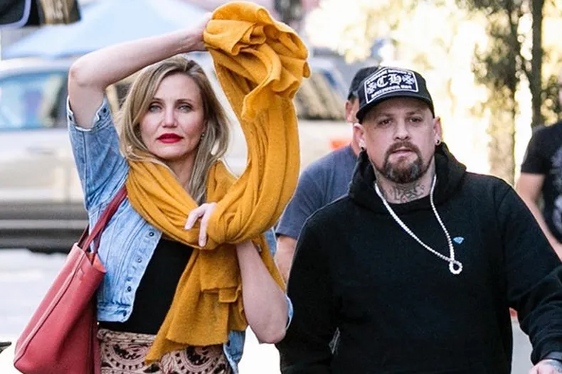 Бохо-юбка и алая помада: 45-летняя Кэмерон Диаз на свидании с мужем Бэнджи Мэдденом