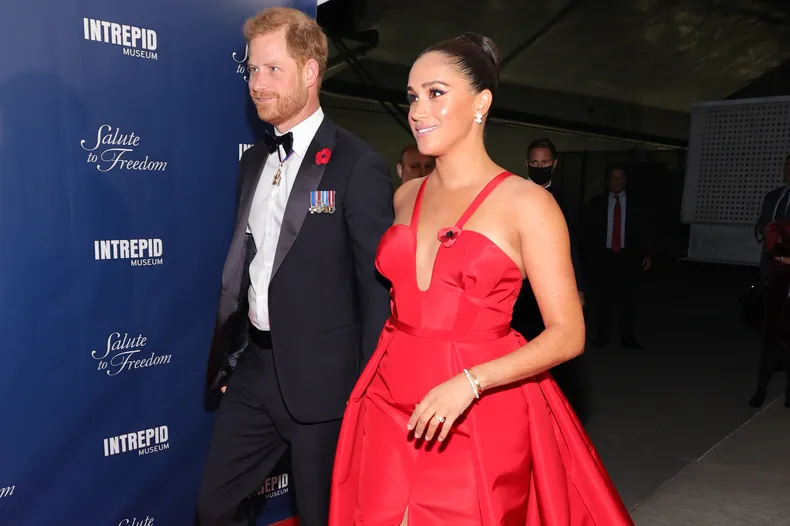 Привет из Голливуда: Меган Маркл в алом платье Carolina Herrera произвела фурор