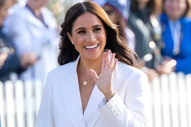 Меган Маркл в ослепительном белом костюме и c часами принцессы Дианы в Гааге