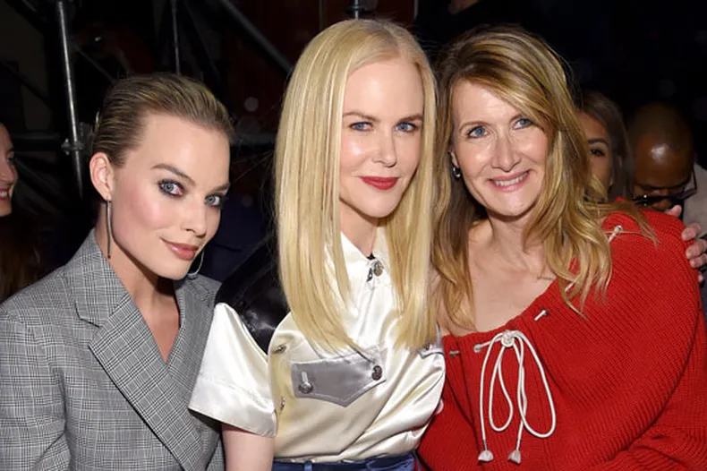 Первый ряд: Марго Робби, Николь Кидман и Синди Кроуфорд на показе Calvin Klein