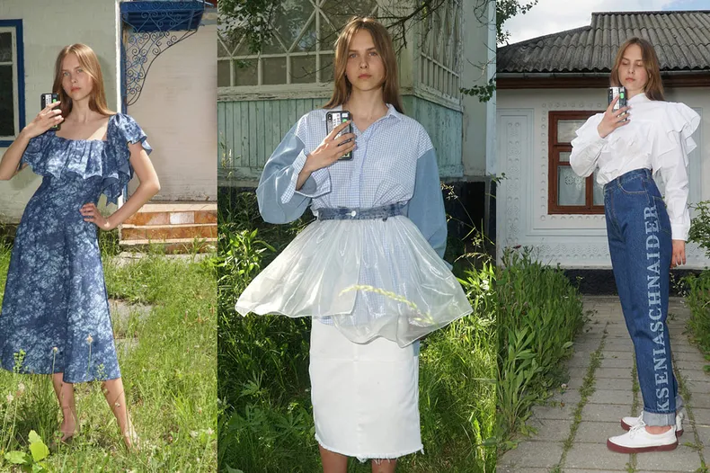 Свитшоты, треники и джинсовые тренчи Ksenia Schnaider из олимпиек и денима 80-х годов