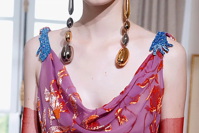 Необъятные юбки, бесконечные шлейфы и цветочные корсеты в кутюрной коллекции Schiaparelli