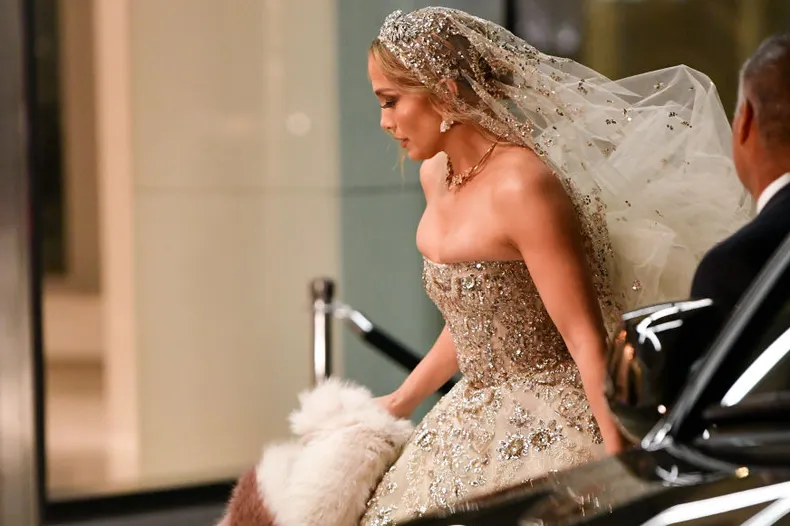 Дженнифер Лопес в роскошном свадебном платье гуляет по Нью-Йорку