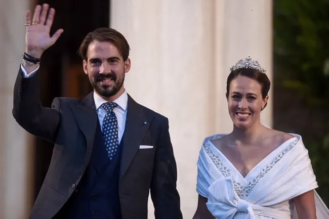 Принцессы Евгения и Беатрис и Даша Жукова со Ставросом Ниархосом на свадьбе греческого принца Филиппоса