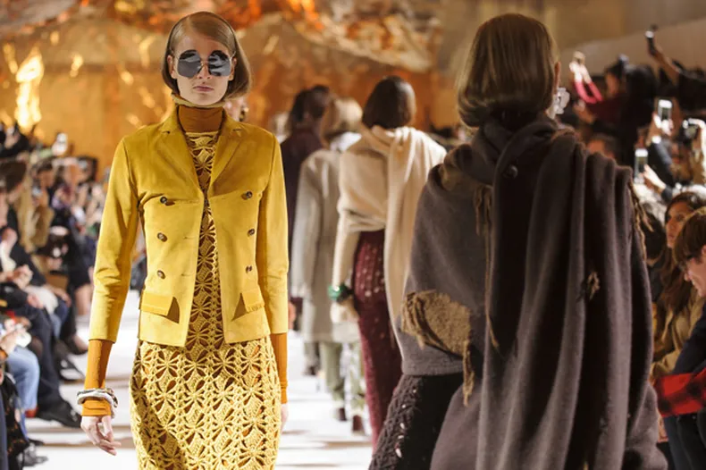Вязаные платья, приталенные пиджаки и много торчащих ниток в коллекции Acne Studios