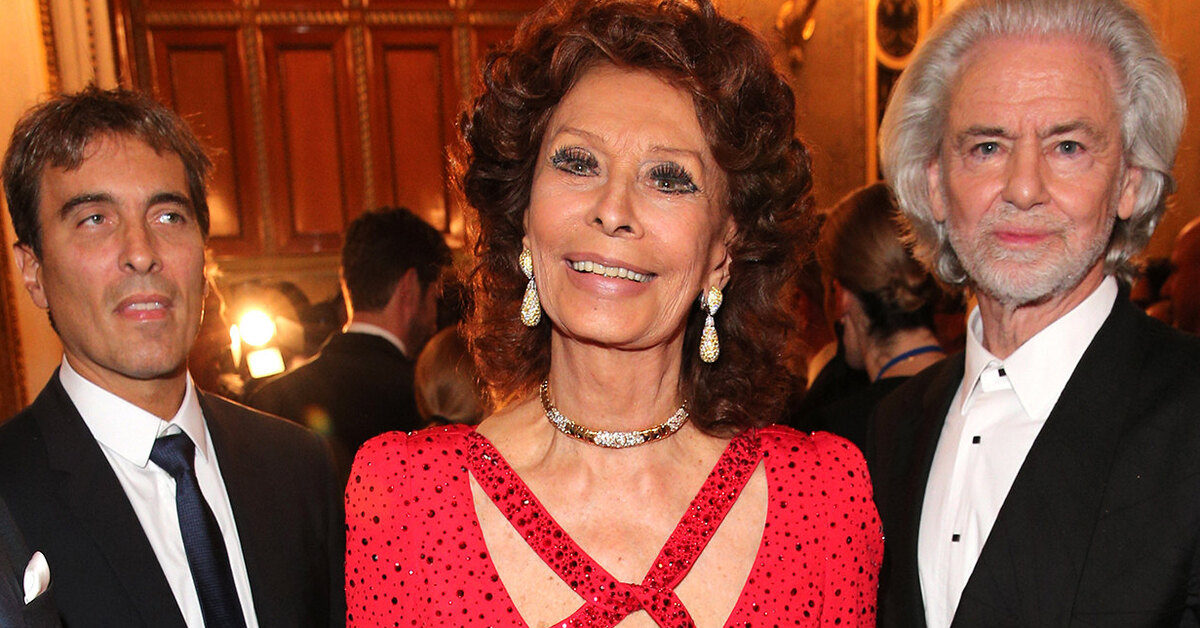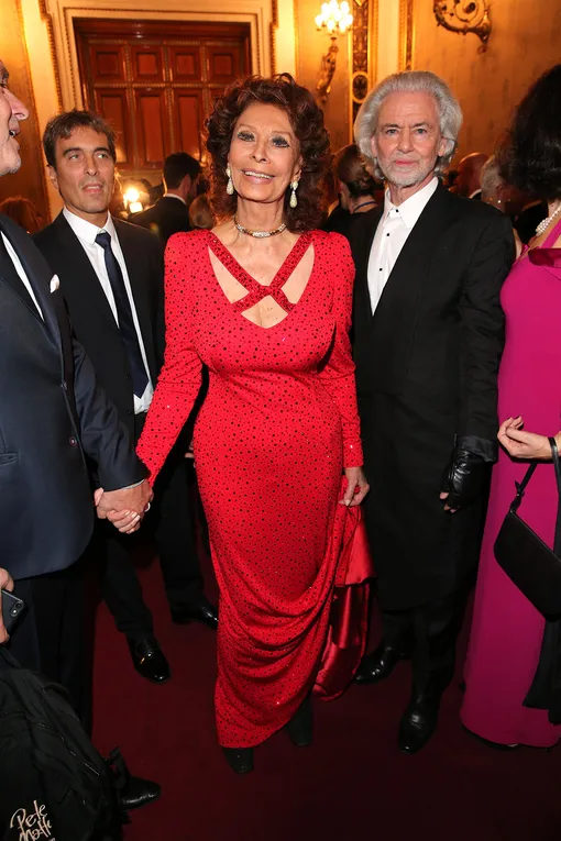 Блестки и смелое декольте в 85: Софи Лорен в алом платье на вечере в Вене