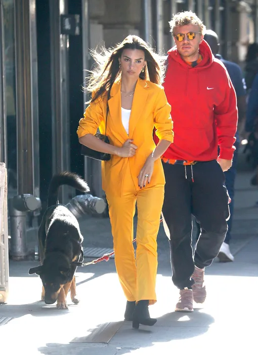 Цвет против осенней хандры: Эмили Ратаковски в канареечном костюме на свидании с супругом