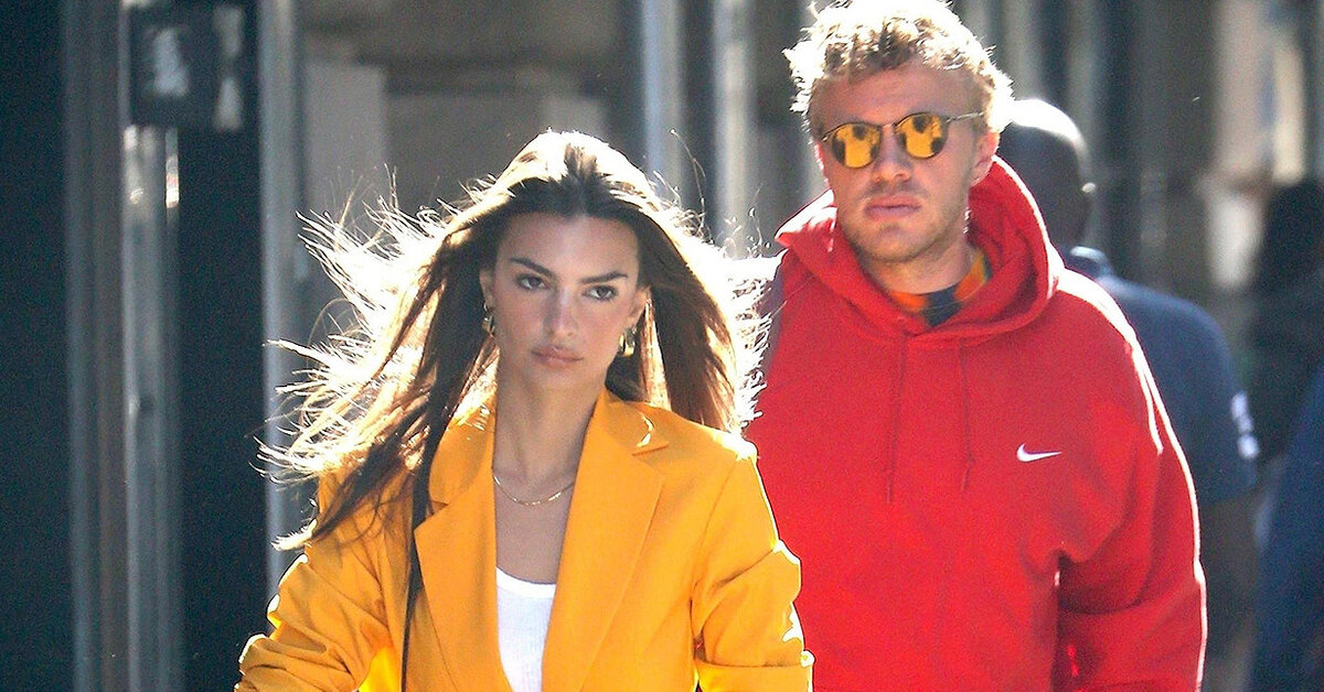 Цвет против осенней хандры: Эмили Ратаковски в канареечном костюме на свидании с супругом