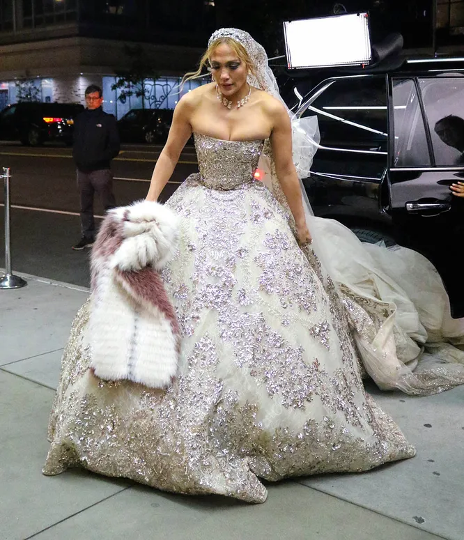 Дженнифер Лопес примерила свадебное платье — правда, пока только на съемках