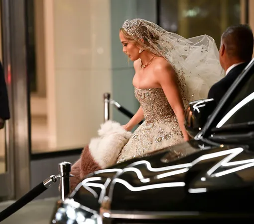 Дженнифер Лопес в роскошном свадебном платье гуляет по Нью-Йорку