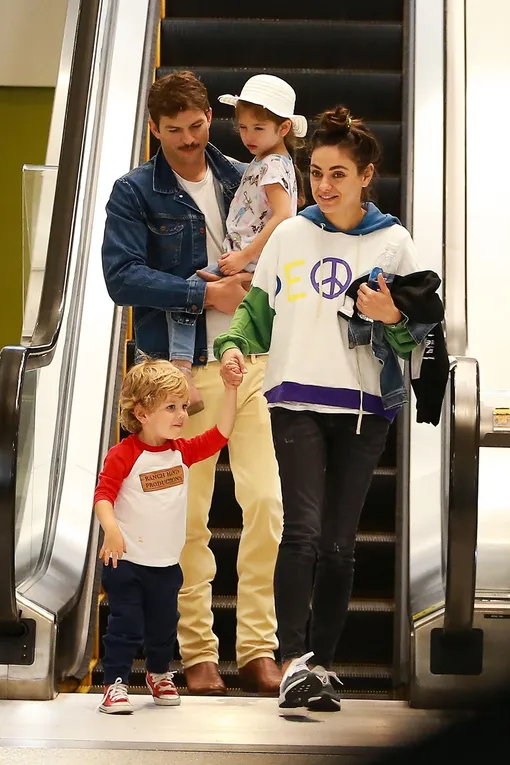 Эштон Кутчер и Мила Кунис очень трепетно охраняют свою личную жизнь и редко появляются на публике вдвоем, а с детьми — еще реже. И все же на днях звездное семейство в полном составе сумели запечатлеть папарацци: Эштон, Мила, их дочь Уайетт и сын Димитрий отправились на шопинг в один из торговых центров Лос-Анджелеса. Эштон оказался на редкость трогательным и заботливым папой: во время спуска на эскалаторе актер несколько раз поцеловал дочь, крепко держа ее на руках. И даже его забавные усы (неизвестно, отращивает Кутчер их ради новой роли или ради удовольствия) не смогли понизить градус нежности на снимках уличных фотографов.