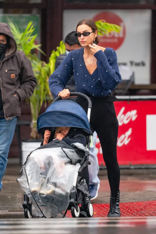 Ирина Шейк старается воспитывать дочь по всем канонам «идеальной мамы»: даже непогода не служит преградой для пеших прогулок. В Нью-Йорке осень окончательно вступила в свои права: температура снизилась и начались дожди. Это обстоятельство нисколько не остановило модель, а папарацци как всегда с воодушевлением отправились за ней.