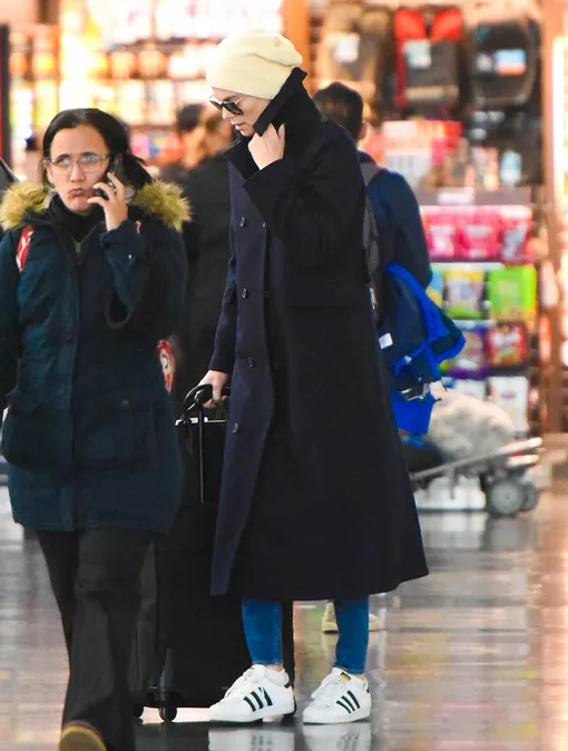 Шарлиз Терон, как и любая актриса ее уровня, часто страдает от своей популярности. Актрисе сложно провожать детей в школу, ужинать с друзьями и путешествовать — повсюду ее узнают и докучают повышенным вниманием. Но Терон научилась мастерски «мимикрировать» под обычных прохожих: к примеру, вчера Шарлиз предстоял очередной перелет. В Международный аэропорт имени Джона Кеннеди звезда прибыла в черном двубортном пальто свободного кроя с поднятым воротником, белой шапке и солнцезащитных очках. Узнать в ней звезду «Адвоката дьявола» и «Безумного Макса» было непросто, но ушлые папарацци все же сумели сделать несколько кадров с нашей героиней.
