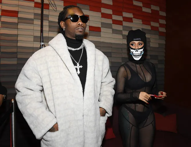 Пока одни модницы тщательно следят за трендами и облачаются в безразмерный оверсайз, Карди Би знает: ничто так не привлекает всеобщего внимания, как минимум одежды. Вот и на ланч в рамках мужской Недели моды в Париже дива пожаловала в полупрозрачном комбинезоне поверх нижнего белья, а сверху накинула шубу с пушистым ворсом, чтобы не озябнуть. Впрочем, этого Карди Би оказалось мало, и она надела еще и балаклаву с ухмылкой черепа и, взяв покрепче за руку супруга, отправилась впечатлять гостей вечера.