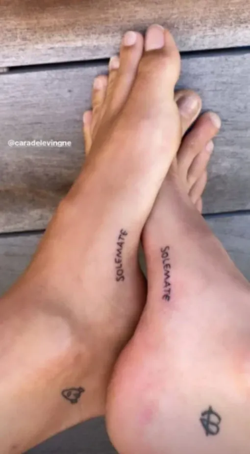 Дочь Синди Кроуфорд выложила в Инстаграме (Социальная сеть признана экстремистской и запрещена на территории Российской Федерации) снимок с двумя ступнями, своей и Кары, на которых красовались одинаковые тату. Девушки набили себе шутливые надписи «solemate», что представляет собой симбиоз двух слов: «родственные души» (soul mate) и «подошва» (sole). Кажется, это новый способ выразить настоящую дружбу. «С днем рождения, моя родная (или подошвенная) душа», — с юмором обратилась Кайя к имениннице.