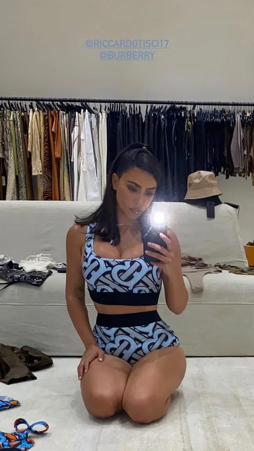 Впрочем, звезда реалити-шоу не унывает и старательно демонстрирует все свои прелести фанатам и мужу, если вдруг он успел забыть, как она выглядит. На этот раз наша героиня примерила бикини Burberry с лого бренда. Наряд авторства Риккардо Тиши подчеркнул упругий пресс и пышные бедра Ким, а ее прическа и макияж в стиле 60-х годов только добавили томности кадру.