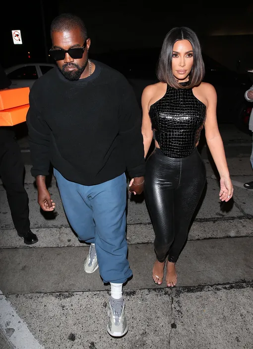 На светские мероприятия Ким Кадашьян собирается с целой командой стилистов и ассистентов, готовых упаковывать ее в утягивающее белье и необычные платья. Впрочем, на прогулку с супругом дива отправляется в не менее эффектных образах. Вчера Ким и Канье приехали на романтичный ужин в калифорнийский ресторан Craig’s (полноценного свидания не вышло: компанию нашим героям составили Кортни Кардашьян и модель Винни Харлоу). Уэст выбрал для вечера комфортный аутфит, а вот его спутница облачилась в кожу с головы до ног: ей приглянулись топ с тиснением под рептилию и черные легинсы с высокой посадкой, а финальным штрихом стали прозрачные босоножки на шпильке — этот образ супруги Канье еще долго не забудет.