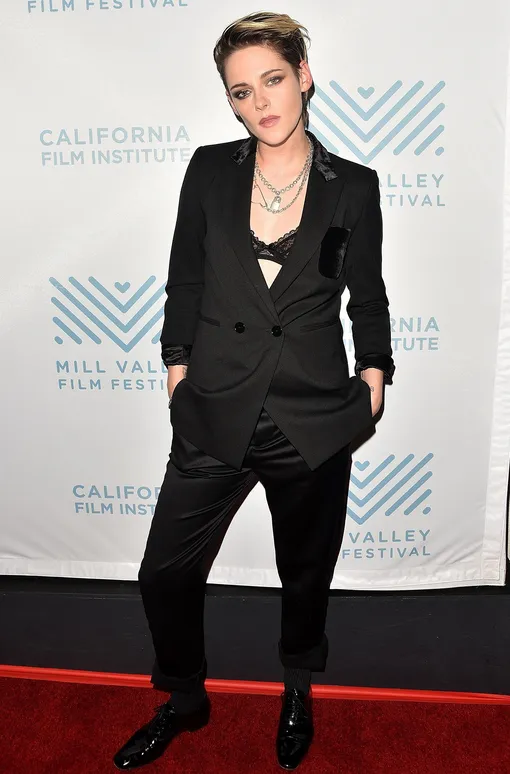 Кристен Стюарт — женщина-хамелеон. В обычной жизни она отправляется по делам в растянутых футболках и рваных джинсах, а на красной дорожке любит будоражить воображение собравшихся при помощи любимого модного приема с нотками сексуальности. Актриса в последнее время часто выходит в свет в нарочито распахнутой одежде, из-под которой виднеется нижнее белье. Вот и для торжественной церемонии и показа фильма «Назло врагам» (Seberg) в калифорнийском Сан-Рафаэле Стюарт выбрала черный смокинг и атласные брюки, а провокационной деталью стал кружевной лиф, выставленный напоказ.