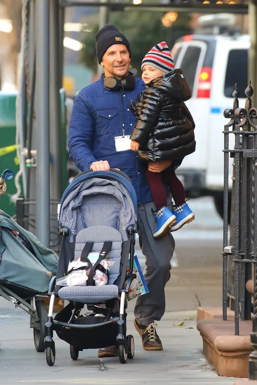 На трогательные снимки Брэдли Купера с дочерью Леей можно смотреть бесконечно: актер и режиссер преображается рядом с белокурой малышкой и буквально тает, когда она смотрит на него. Таем и мы при виде этой славной парочки. Судя по фото, девочка решила путешествовать не в коляске, а на руках у любимого папы. Ну разве мог Брэдли устоять перед желанием Леи: он лишь поправил пуховик и резиновые сапоги Burberry на маленькой моднице и отправился показывать ей осенний Нью-Йорк.