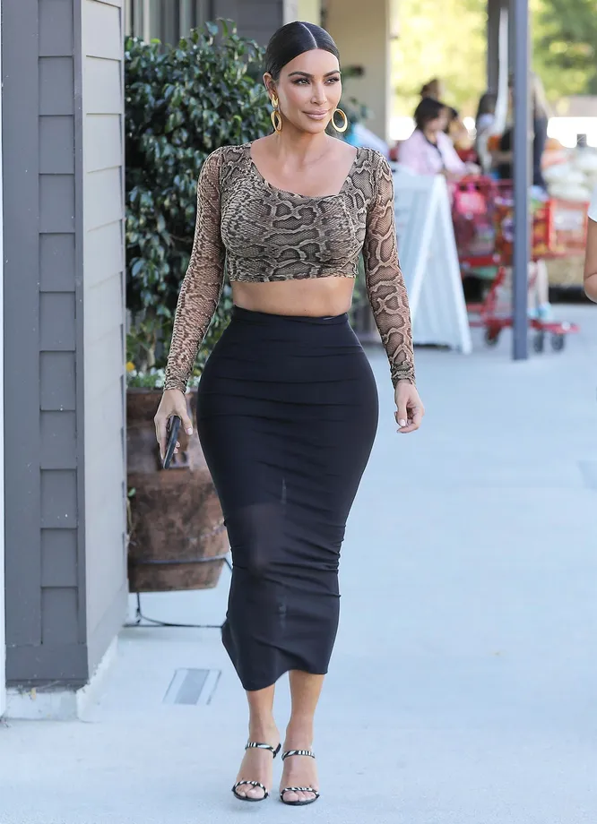 Ким Кардашьян не из тех людей, кто отправляется на шопинг в удобной и нейтральной одежде: супруга Канье Уэста даже в магазин выходит в образе, продуманном до мелочей. К примеру, вчера дива решила заглянуть в один из бьюти-корнеров в Калабасасе и изучить ассортимент представленной в нем косметики от собственного бренда. Для этой прогулки Ким облачилась в кроп-топ с окрасом под рептилию и короткие велосипедки, поверх которых накинула прозрачную юбку. Двухцветные босоножки и массивные золотые серьги стали финальными аккордами в аутфите Кардашьян — сложно представить, сколько времени заняла у нее подготовка к этому будничному выходу.