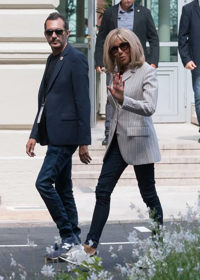 Брижит Макрон уверена: даже первая леди может выходить за рамки модных правил и выходить в свет в любимых вещах, пусть при этом они считаются неуместными в деловом гардеробе. Так, супруга президента Франции Эммануэля Макрона и в 66 лет обожает щеголять в мини (особенно ей по душе короткие платья Louis Vuitton) и не может представить своей жизни без джинсов скинни. На днях Брижит прибыла на саммит G7, который в этом году принимает французский Биарриц: папарацци запечатлели ее на пути к отелю Palace, куда Макрон спешила в джинсах в облипку, кроссовках и сером блейзере в полоску. Надо признать, что это демократичный аутфит очень к лицу главной моднице Франции.
