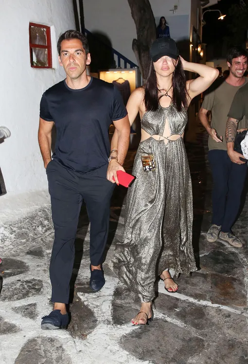 Греческие каникулы Адрианы Лимы продолжаются: на днях бразильская модель собрала массу комплиментов, прогулявшись по вечернему Миконосу в шелковом топе с узелком на голое тело. Судя по всему, подобное внимание Адриане пришлось по вкусу, и вчера она вновь выбрала для прогулки откровенный образ. Лима отправилась на свидание с бойфрендом, турецким бизнесменом Эмиром Уяром, в серебряном платье со смелыми разрезами на талии и по бокам. При этом 38-летняя модель решила обойтись без макияжа и спрятала глаза и отсутствие укладки под черной бейсболкой — понимаем прохожих: такую красавицу сложно оставить без внимания!