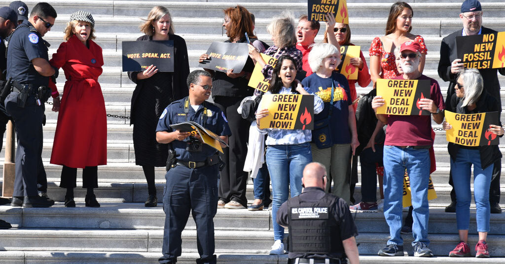 В эту пятницу на ступенях Капитолия полиция Вашингтона арестовала 16 участников акции протеста против изменения климата. В их числе была 81-летняя голливудская актриса Джейн Фонда. Полицейские надели на Джейн наручники и отвели в свой фургон.