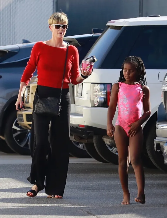 Долгое время Шарлиз Терон никак не комментировала образы своего сына Джексона: ребенок часто появлялся на публике в платьях и розовых кедах с блестками и явно больше тяготел к «девчачьим» вещам. Но недавно актриса поставила точку в этом щекотливом вопросе, назвав своих детей «девочками» и подтвердив, что Джексон позиционирует себя не как мальчик. На днях звездную маму заметили в Лос-Анджелесе со старшей «дочерью» — последняя выбрала для прогулки розовый купальник. Наши герои перекусили замороженным йогуртом и мило пообщались, после чего Джексон отправилась на тренировку.