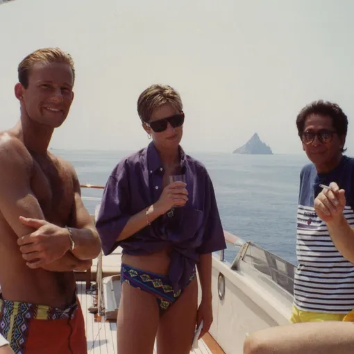 К 1990-му году принцесса Диана уже жила отдельно от мужа и едва ли ее жизнь была похожа на бесконечные страдания нелюбимой женщины. Леди Ди, безусловно, переживала из-за своего неудачного брака, но это не мешало ей развлекаться. Невестка королевы Великобритании отправилась на каникулы в Италию, чтобы развеяться и прийти в себя. Компанию в той поездке ей составил сооснователь дома Valentino Джанкарло Джаммети и болгарский князь Кирилл Преславский. Мистер Джаммети предался ностальгии и выложил в своем Инстаграме (Социальная сеть признана экстремистской и запрещена на территории Российской Федерации) раритетные снимки, сделанные в то время.
